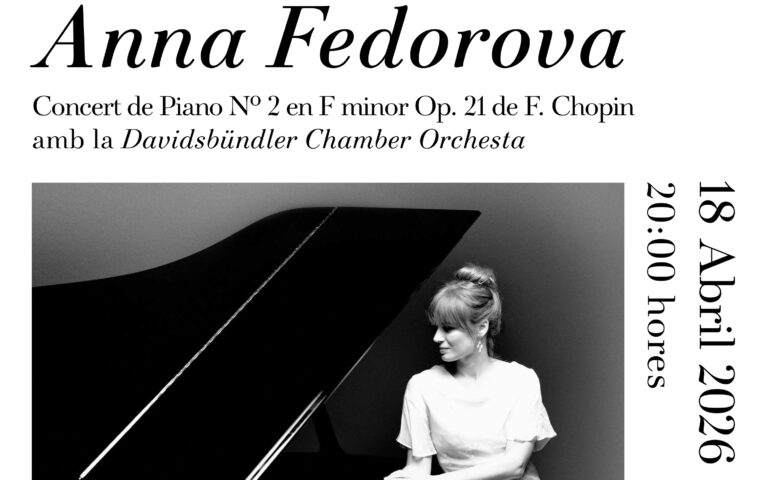 El Palau de la Música Catalana acollirà el proper 18 d'abril el Concert per a piano núm. 2 en Fa menor Op. 21 de Frédéric Chopin interpretat per la pianista Anna Fedorova, que estarà acompanyada per l’orquestra de cambra Davidsbündler. Es tracta d’un concert benèfic impulsat per la Fundació d’Investigació Salut i Progrés (FISP) i la Fundació Davidsbündler, sota el…