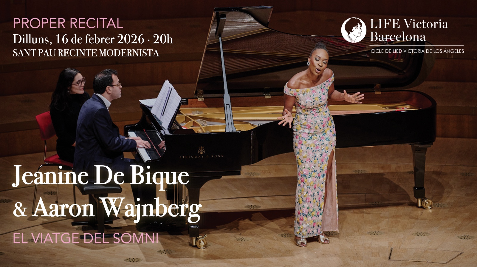 La soprano Jeanine De Bique i el pianista Aaron Wahnberg fan el seu debut al LIFE Victoria amb aquest programa on ens conviden a un viatge a través dels somnis, no només com a fantasmes nocturns, sinó com a expressions profundes del desig, de la fe, de la bellesa i de la pèrdua. La música, com els somnis, ens transporta a llocs on la raó sovint no pot arribar. *The Blessed Virgin’s Expostulation* de Henry Purcell dóna veu al malson inquiet d’una mare que ha perdut el seu fill: una visió carregada d’angoixa i esperança que trenca la barrera entre el sagrat i l’humà. Les cançons d’André Previn amb textos de Toni Morrison —autora profundament arrelada en els temes de memòria, pèrdua i identitat— ens porten als somnis d’una dona contemporània. Mentre que *Les illuminations* són en si mateixes un somni poètic: ciutats imaginàries, escenes de reialesa, mars inquietes i amants irreals. Rimbaud somia amb els ulls oberts i Britten converteix aquest deliri líric en una arquitectura sonora de gran força expressiva. Per acabar, les cançons tradicionals caribenyes ens connecten amb una altra mena de somni: el de la memòria col·lectiva, de la terra, de la infància, del ritual i del cos.